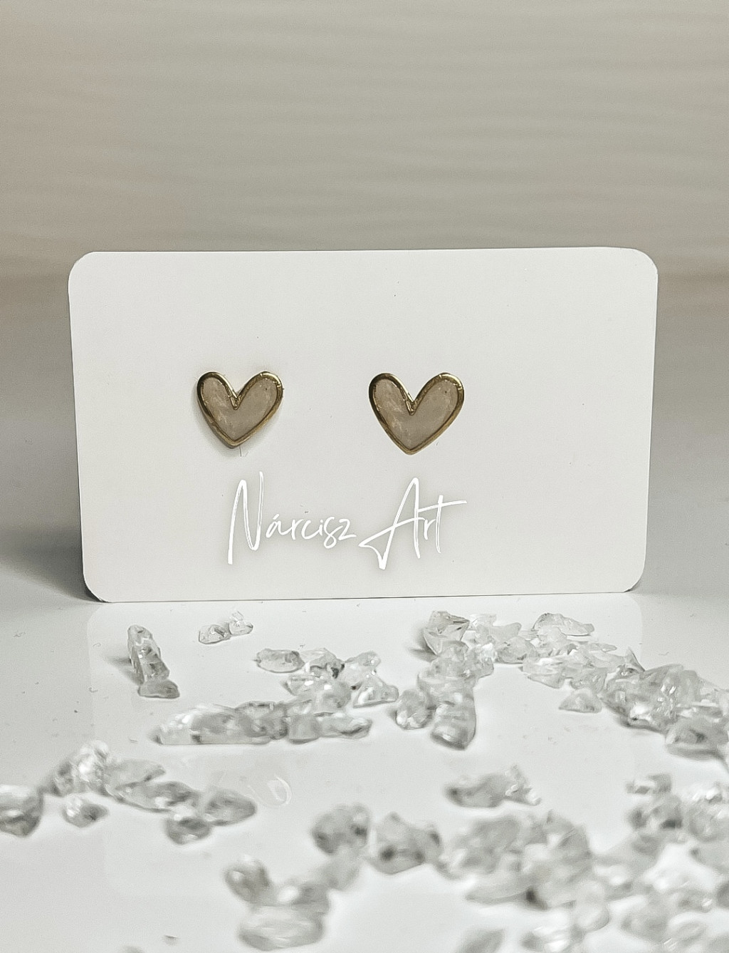 " Fehér-arany epoxi gyanta szív alakú fülbevaló"#03