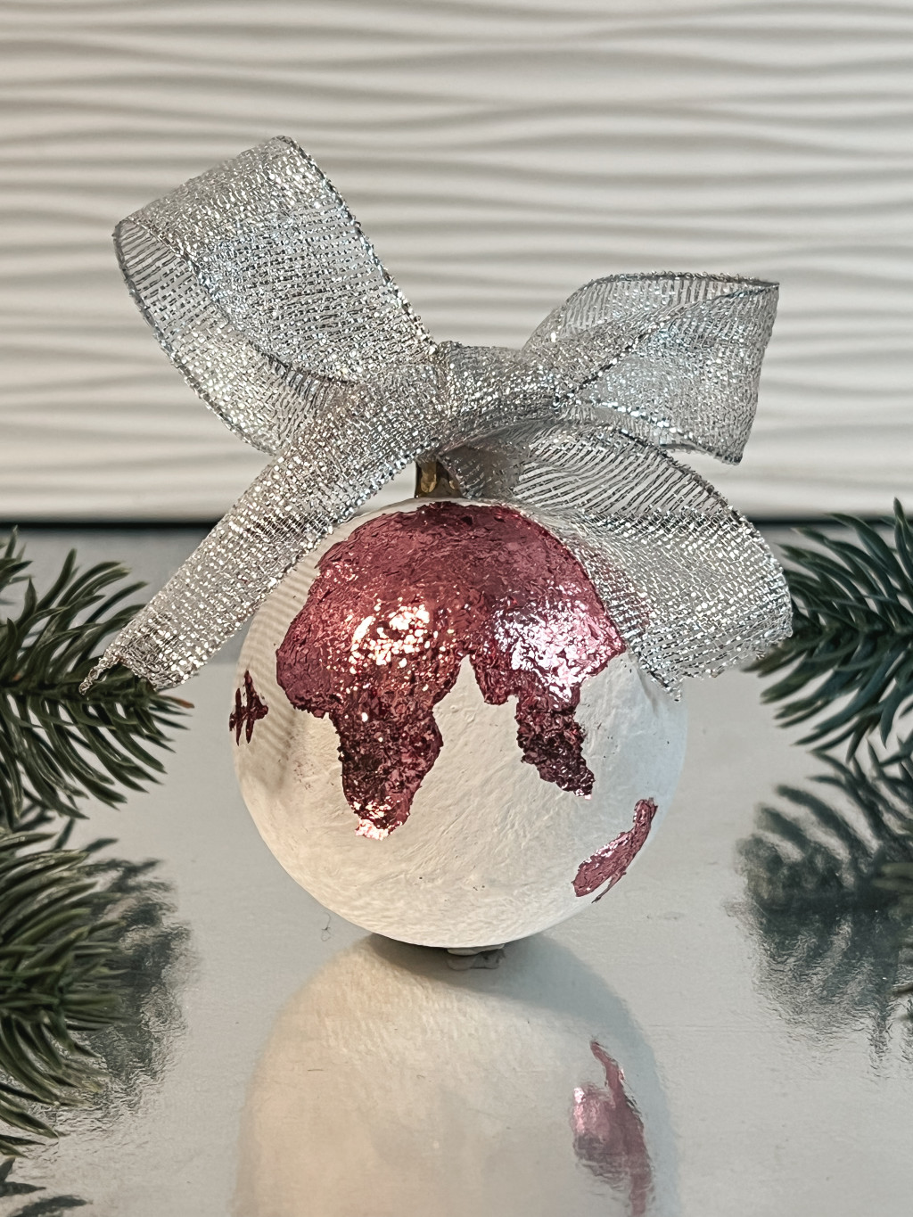 " Rosegold-fehér földgömb karácsonyfadísz" #05