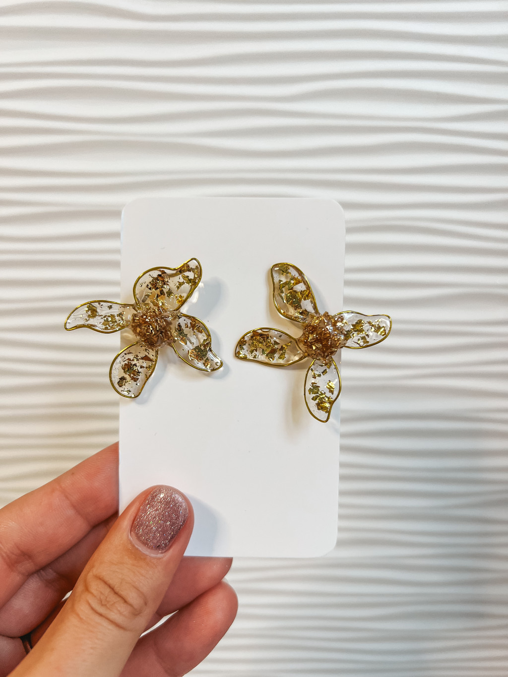 "Arany-átlátszó füstfóliás epoxi gyanta elegáns virág fülbevaló"#66