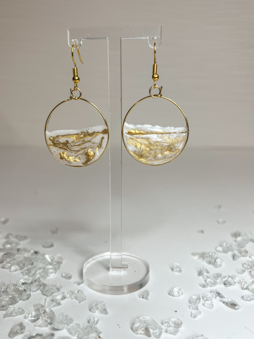 "Arany-fehér epoxi gyanta kör alakú női elegáns fülbevaló"#02
