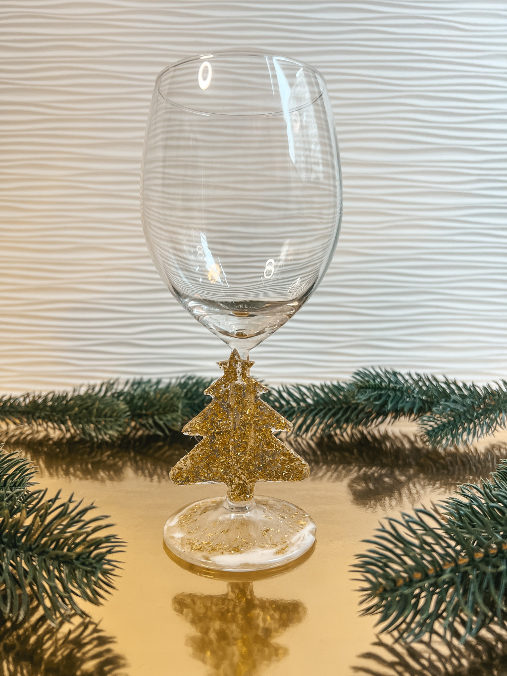 "Arany-fehér karácsonyi boros pohár epoxi gyanta ajándék"#01