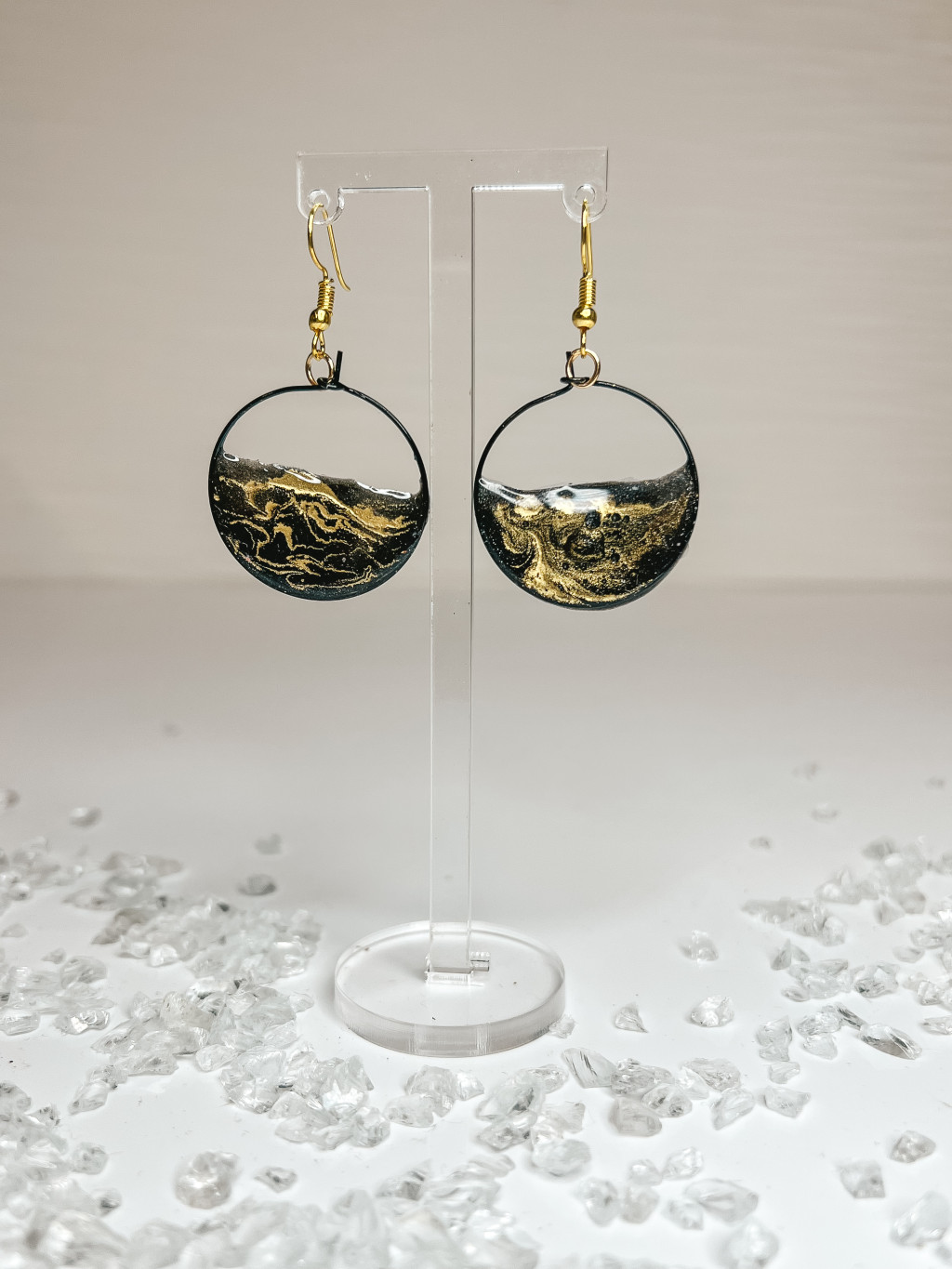 "Arany-fekete epoxi gyanta kör alakú női elegáns fülbevaló"#4