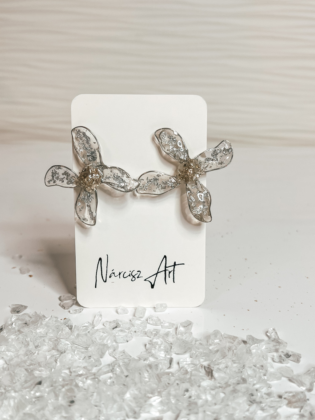 "Ezüst-átlátszó füstfóliás epoxi gyanta elegáns virág fülbevaló"#72
