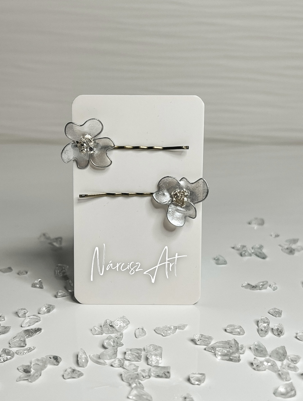 "Ezüst epoxi gyanta hajcsat szett"#04