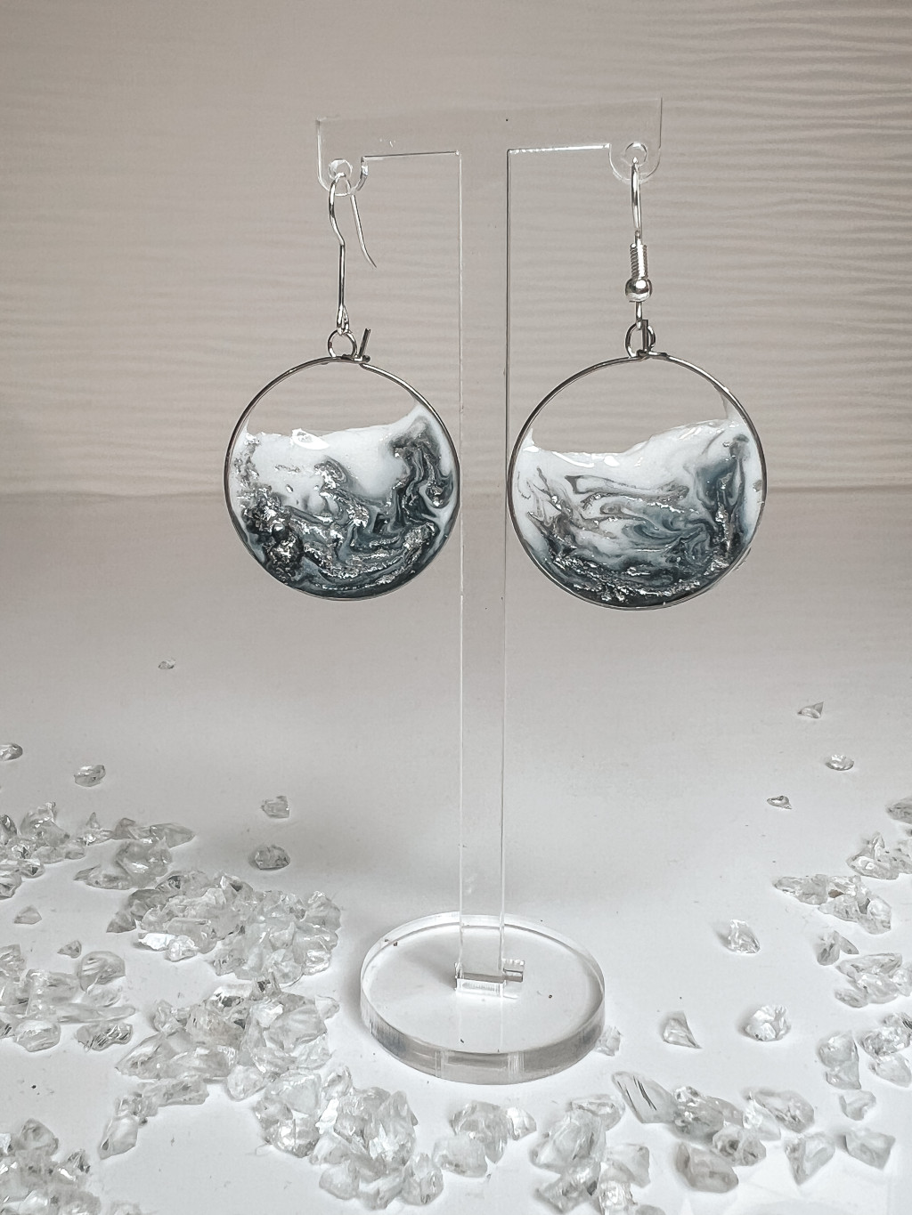 "Ezüst-fehér epoxi gyanta kör alakú női elegáns fülbevaló"#05