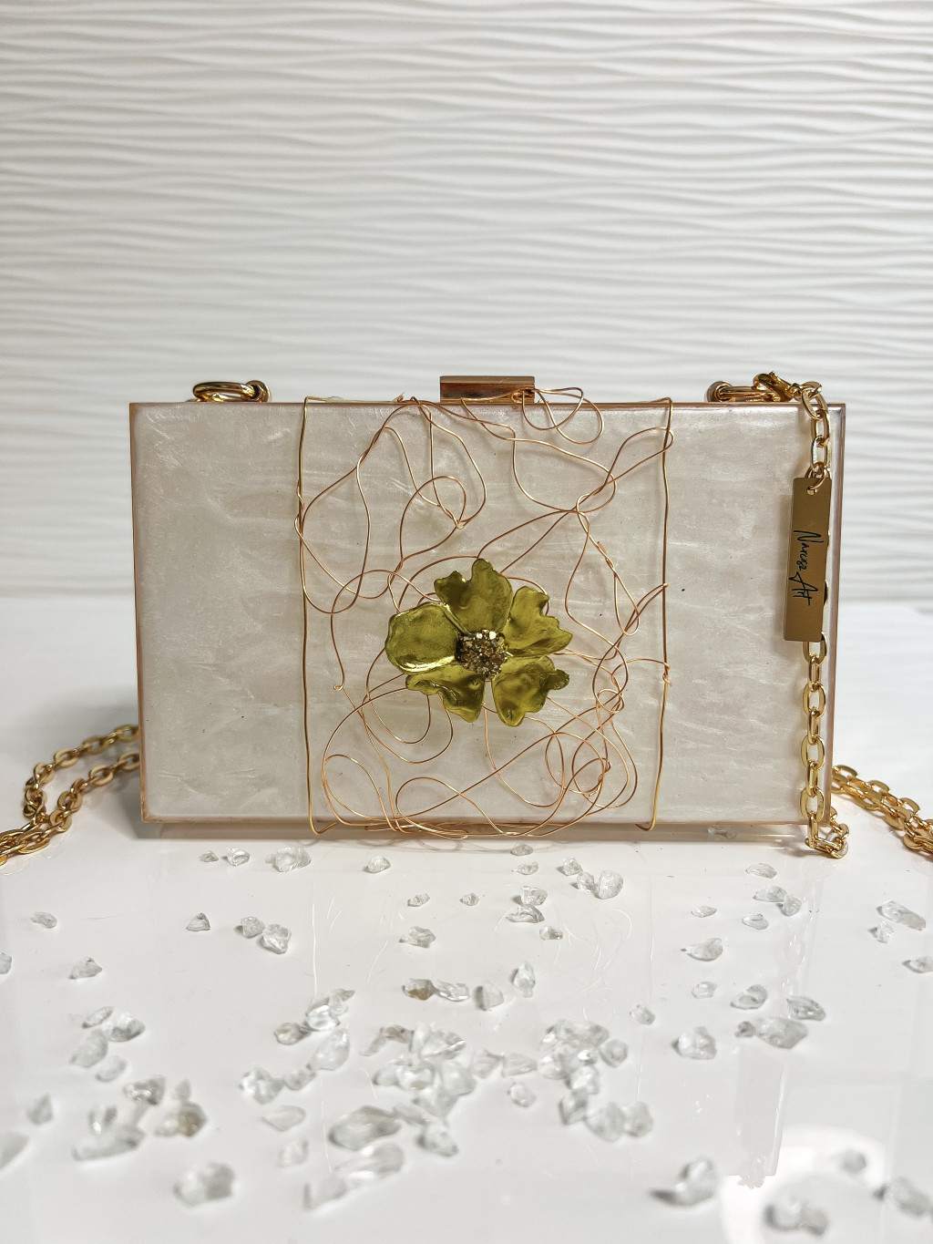 "Fehér-arany epoxi gyanta virágos clutch táska"#06
