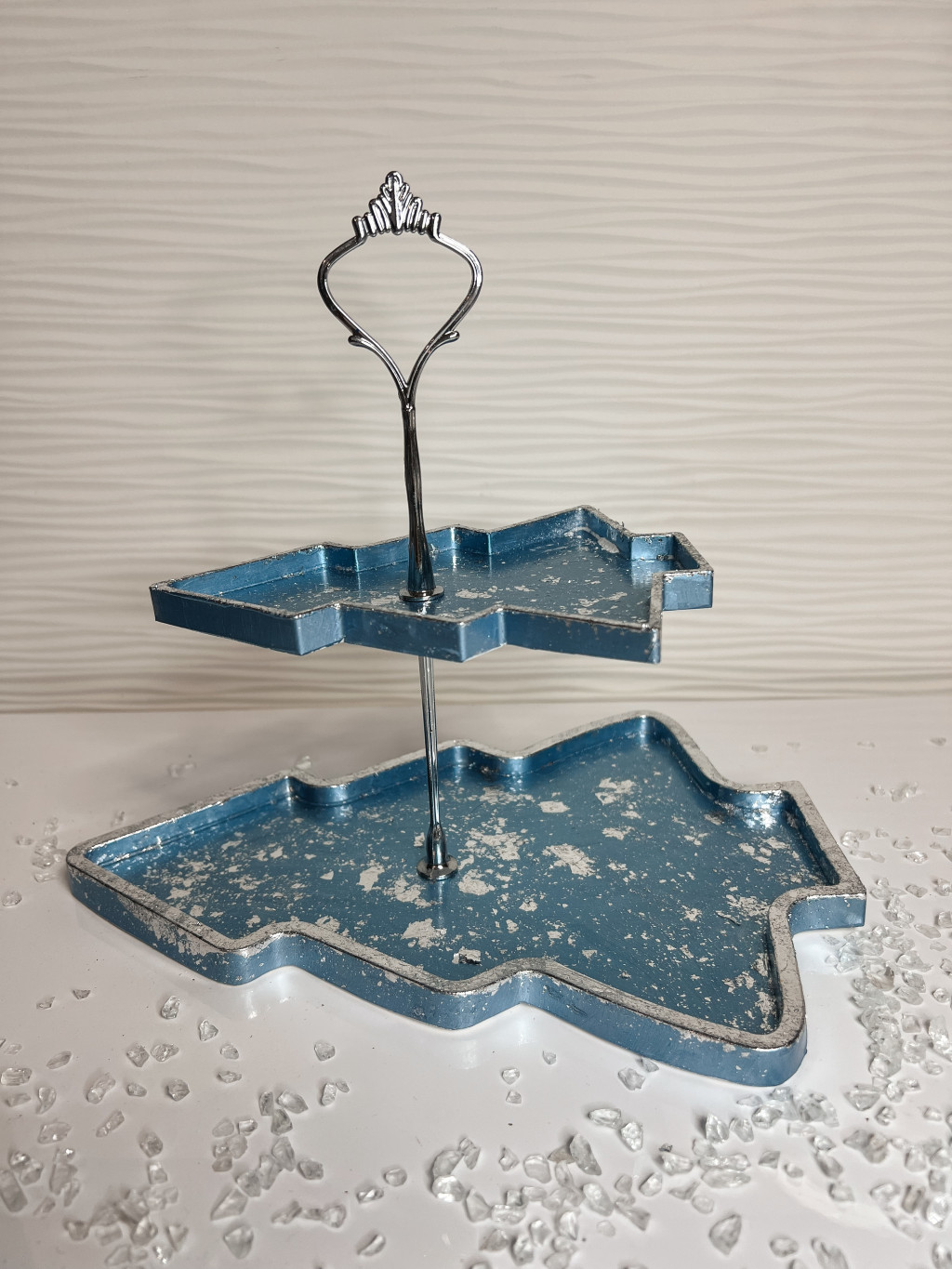 "Kék-ezüst fenyőfa formájú emeletes kínálótál ajándék"#004