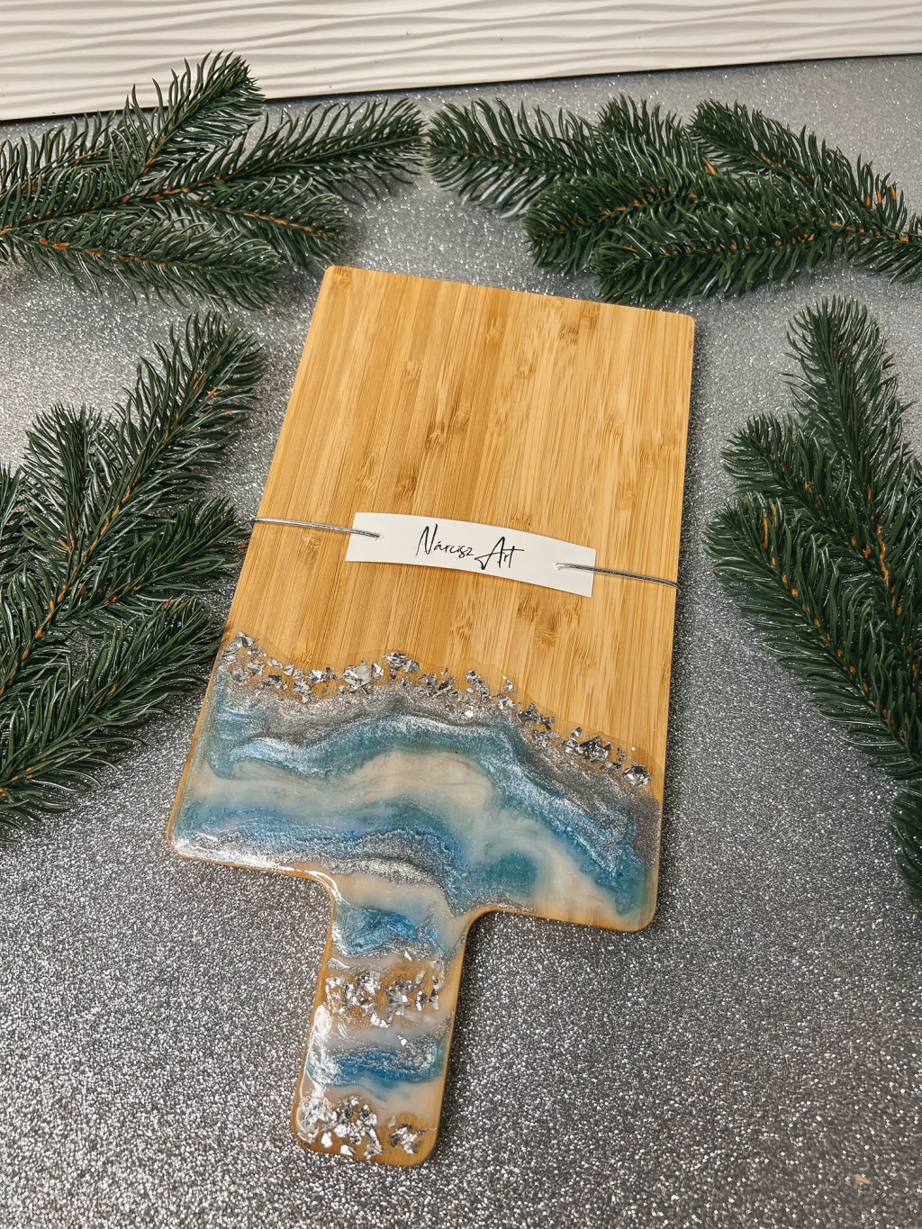 "Kék-ezüst metál csillogós epoxi gyanta fedésű vágodeszka, ajándék"#04