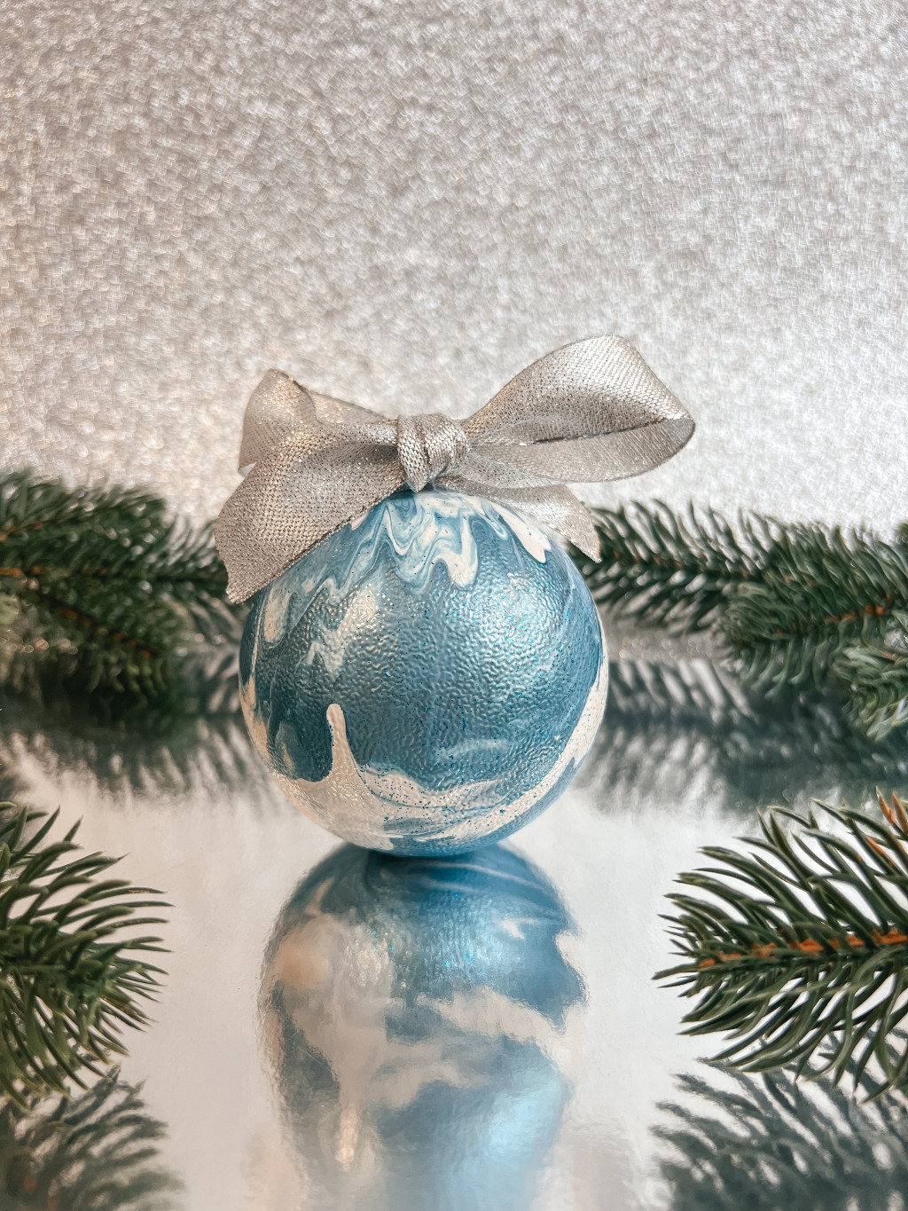 "Kék - fehér metál márványos karácsonyi gömb"#04