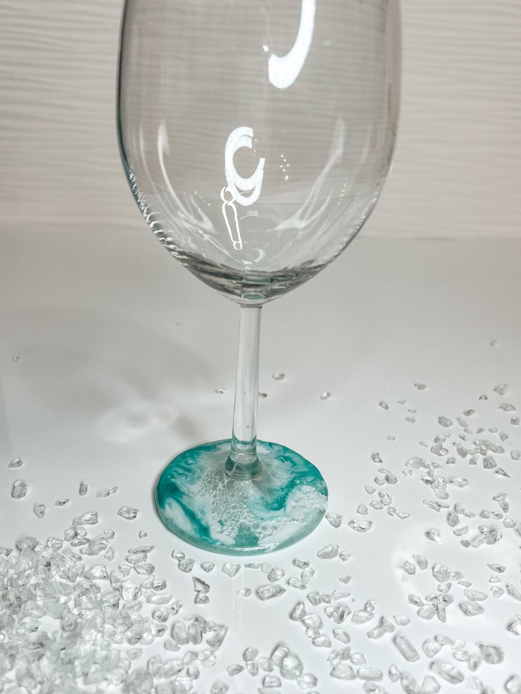 "Mentazöld epoxi gyanta fedésű óceán hatású borospohár"#06