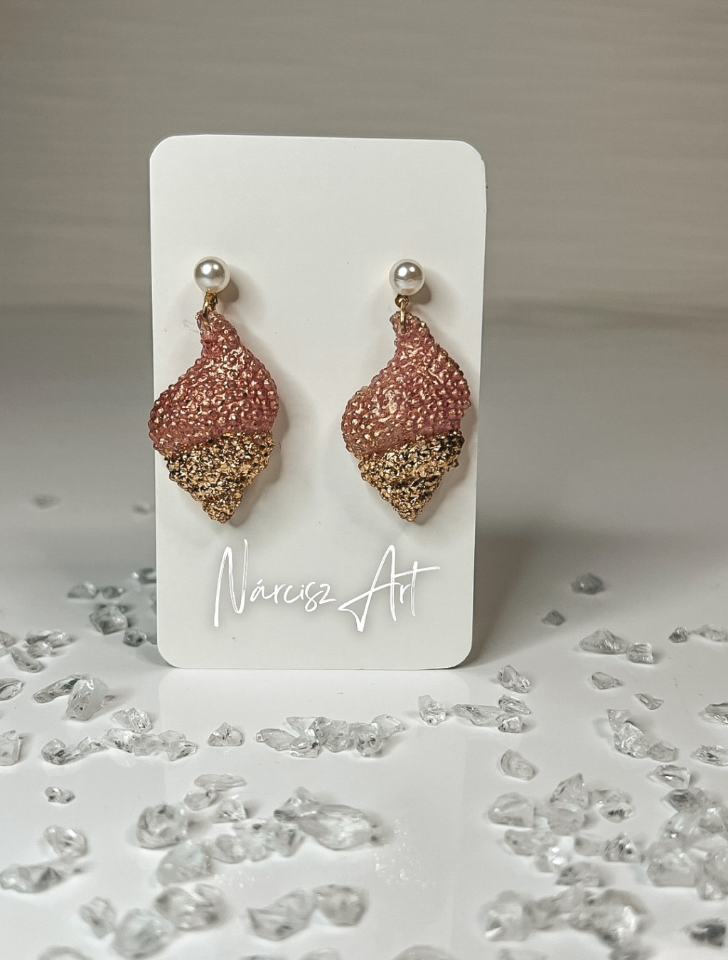 "Rosegold-arany epoxi gyanta kagyló formájú fülbevalók"#08