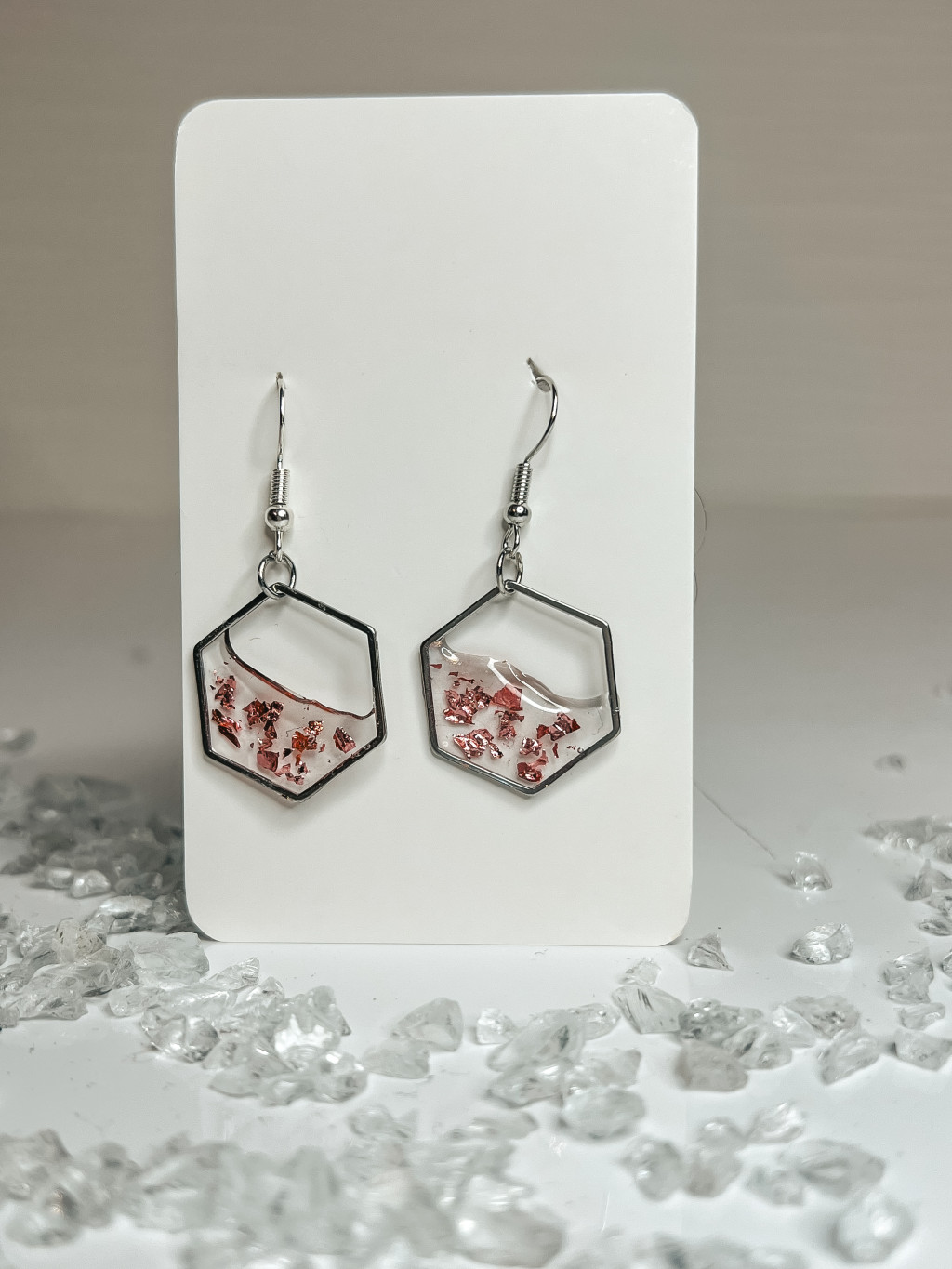 "Rosegold-átlátszór epoxi gyanta hatszög alakú női elegáns fülbevaló"#