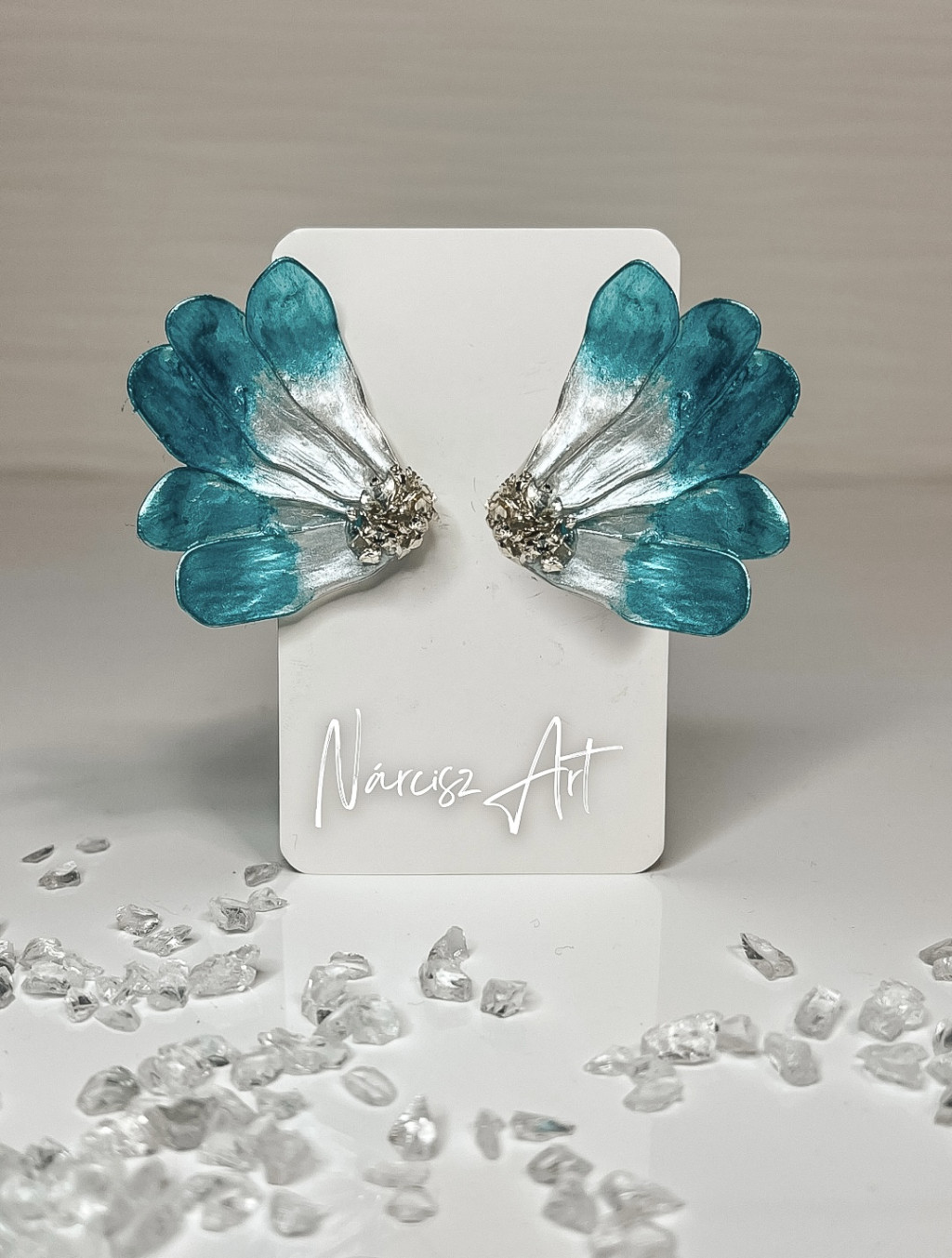"Türkíz epoxi gyanta féloldalas virág fülbevaló"#29