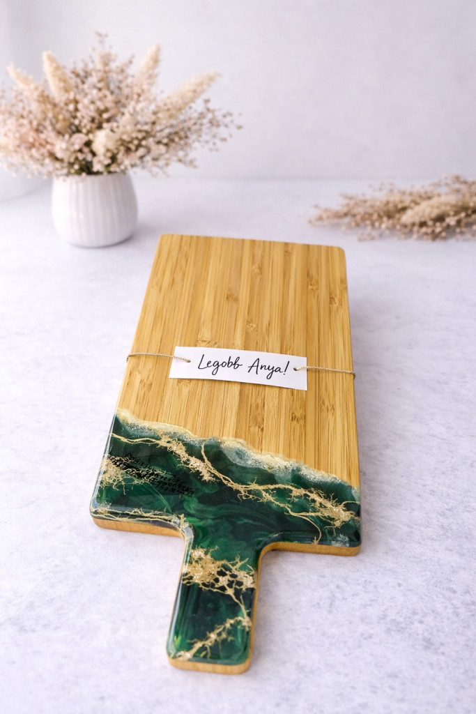 "Zöld-arany epoxi gyanta fedésű vágódeszka, különleges ajándék, anyák napja, köszönőajándék"#06
