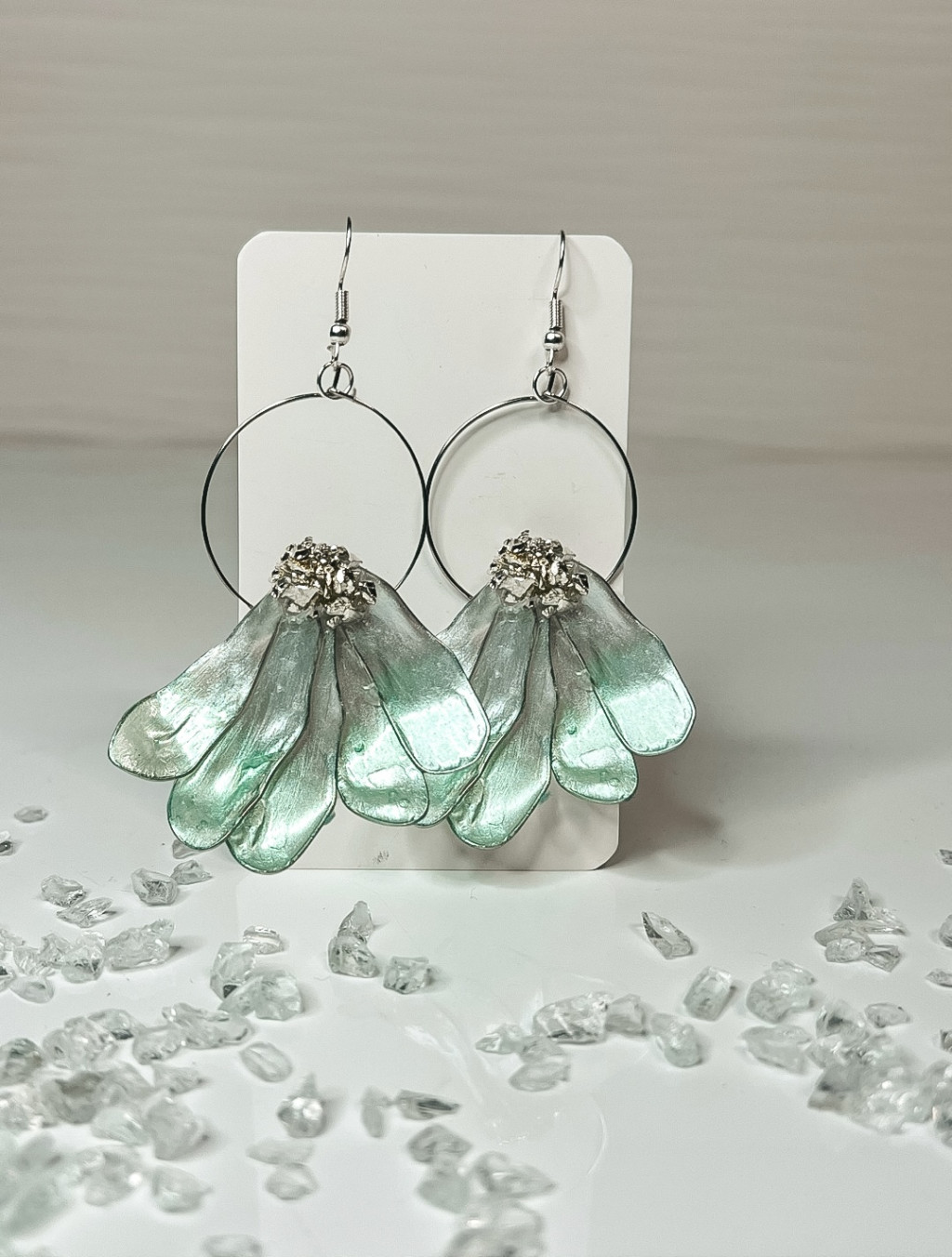 "Zöld epoxi gyanta virágos fülbevaló"#39
